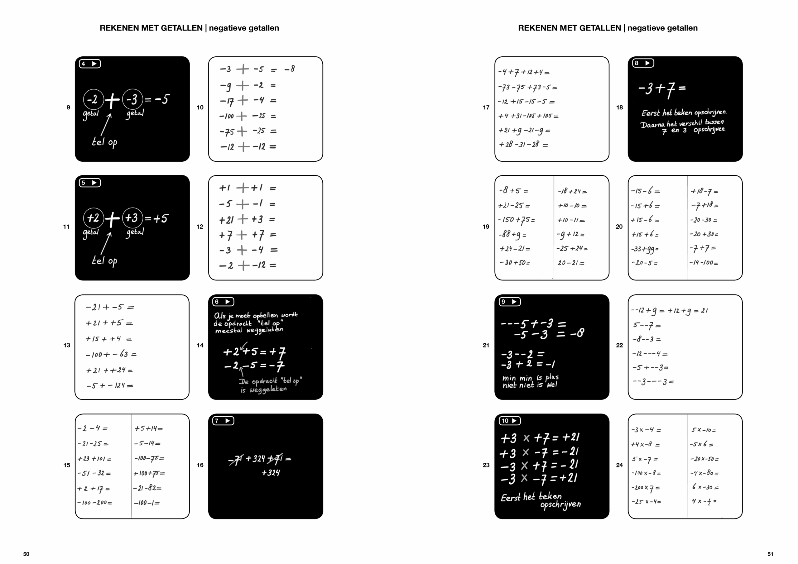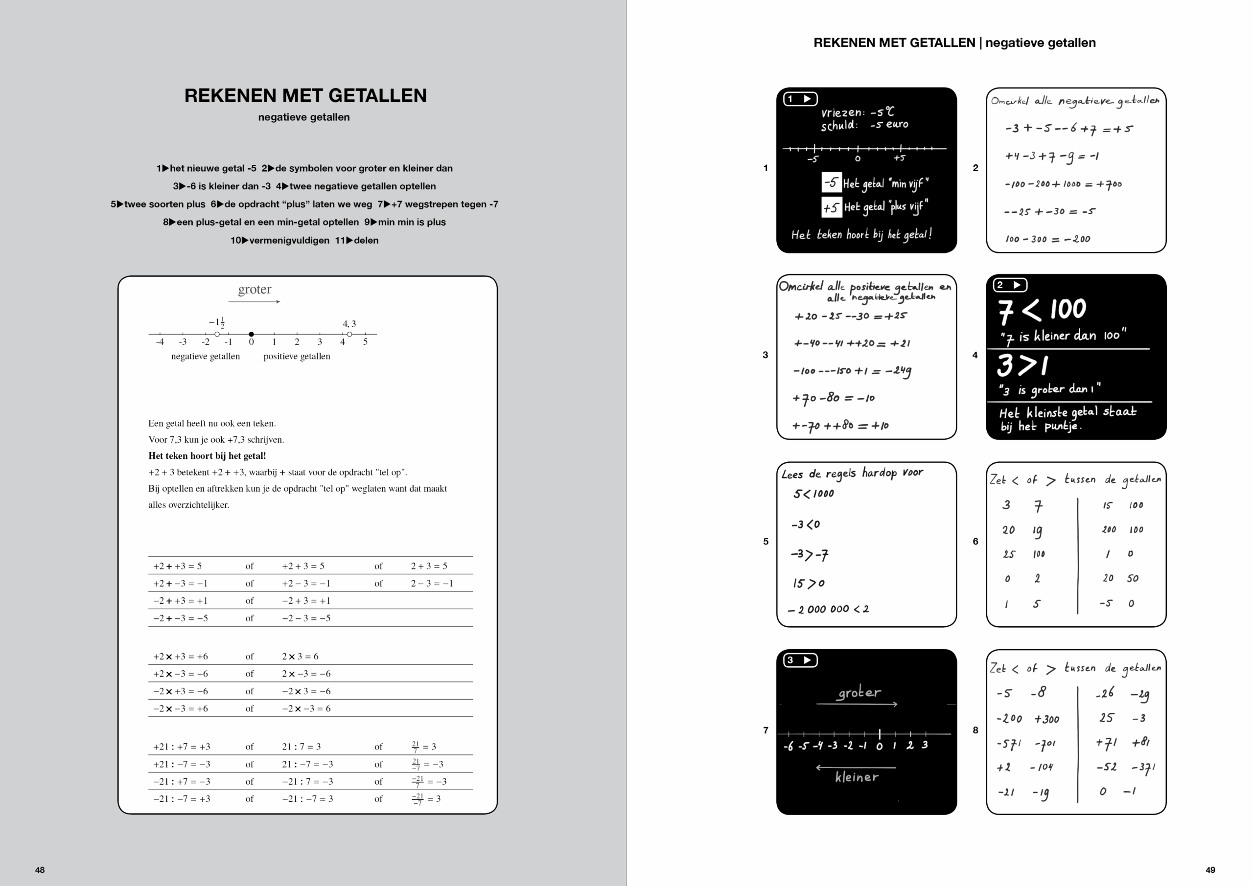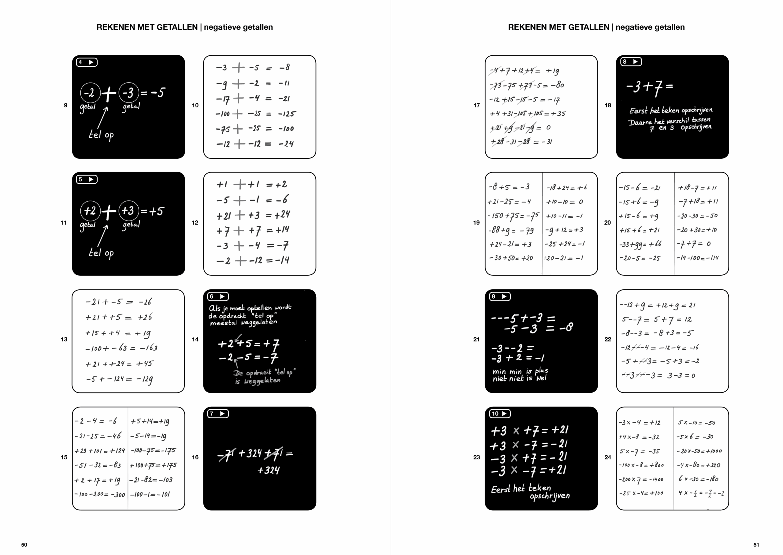 Het recept is dus simpel. Als je op school bijvoorbeeld bezig bent met negatieve getallen en de sommen beginnen je te duizelen, bekijk dan van de serie “negatieve getallen” video nummer 1 en maak de korte oefeningen die horen bij de uitleg. Dit duurt samen maar een paar minuten. Daarna bekijk je video nummer 2 enz.