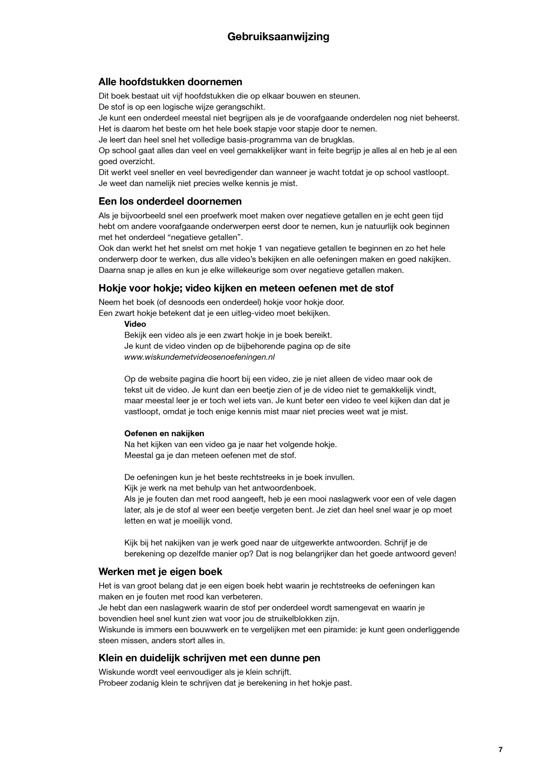 Door de video’s en de uitgewerkte antwoorden kan de leerling geheel zelfstandig een wiskunde-onderwerp doornemen.